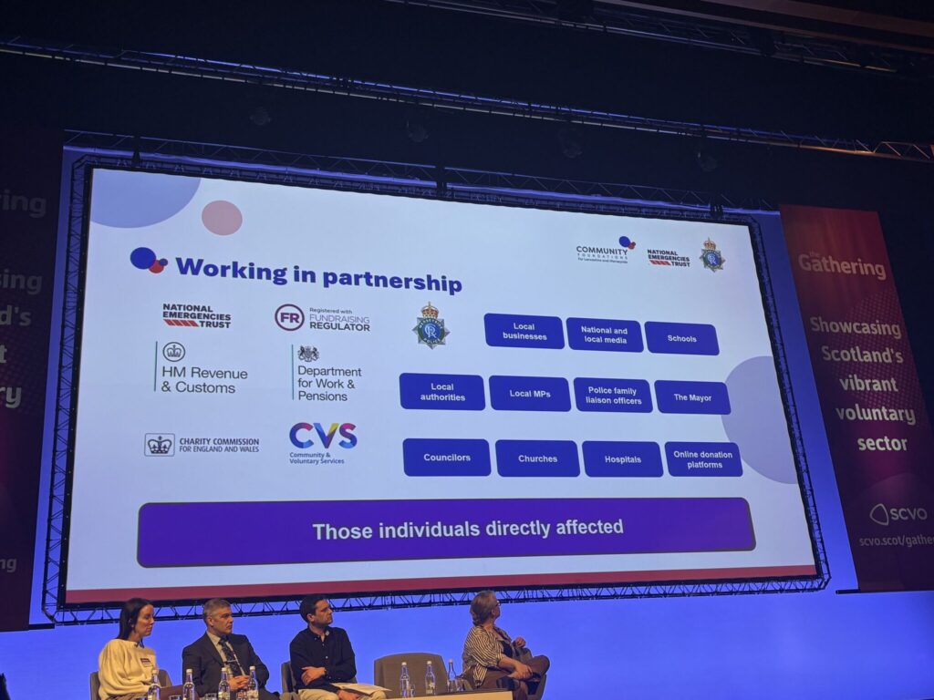 We opened day one of SCVO’s The Gathering, alongside colleagues from the National Emergencies Trust and Merseyside Police. Being the first session of the event was a real privilege and an important opportunity to talk honestly about how organisations can work together when communities are facing the most difficult circumstances.